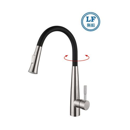 K-LF407 不銹鋼304萬向廚房龍頭 兩段式出水 CNS8088 LF無鉛認證 黑色矽膠出水管可左右前後彎折