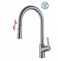 CPS-LF432 不銹鋼304廚房兩段式出水伸縮抽拉冷熱龍頭 外觀為不銹鋼刷線效果 CNS8088 LF無鉛認證